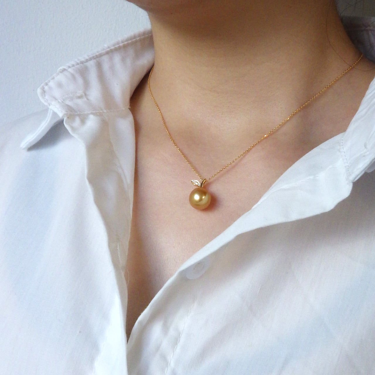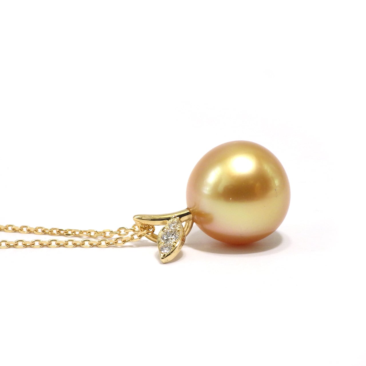 商品名:K18YG 南洋白蝶ゴールド真珠・ダイヤモンドペンダントトップ《Fruit》奄美大島 産地証明付【KAWABE JEWELRYオリジナル】