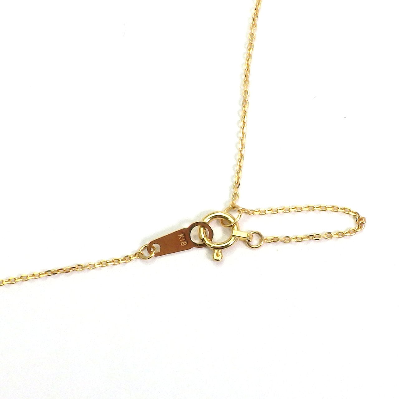 可憐さを引き立たせるのは、華奢で繊細なイエローゴールドのチェーン。一コマ一コマに施されたカットが、細やかに光を反射します。
