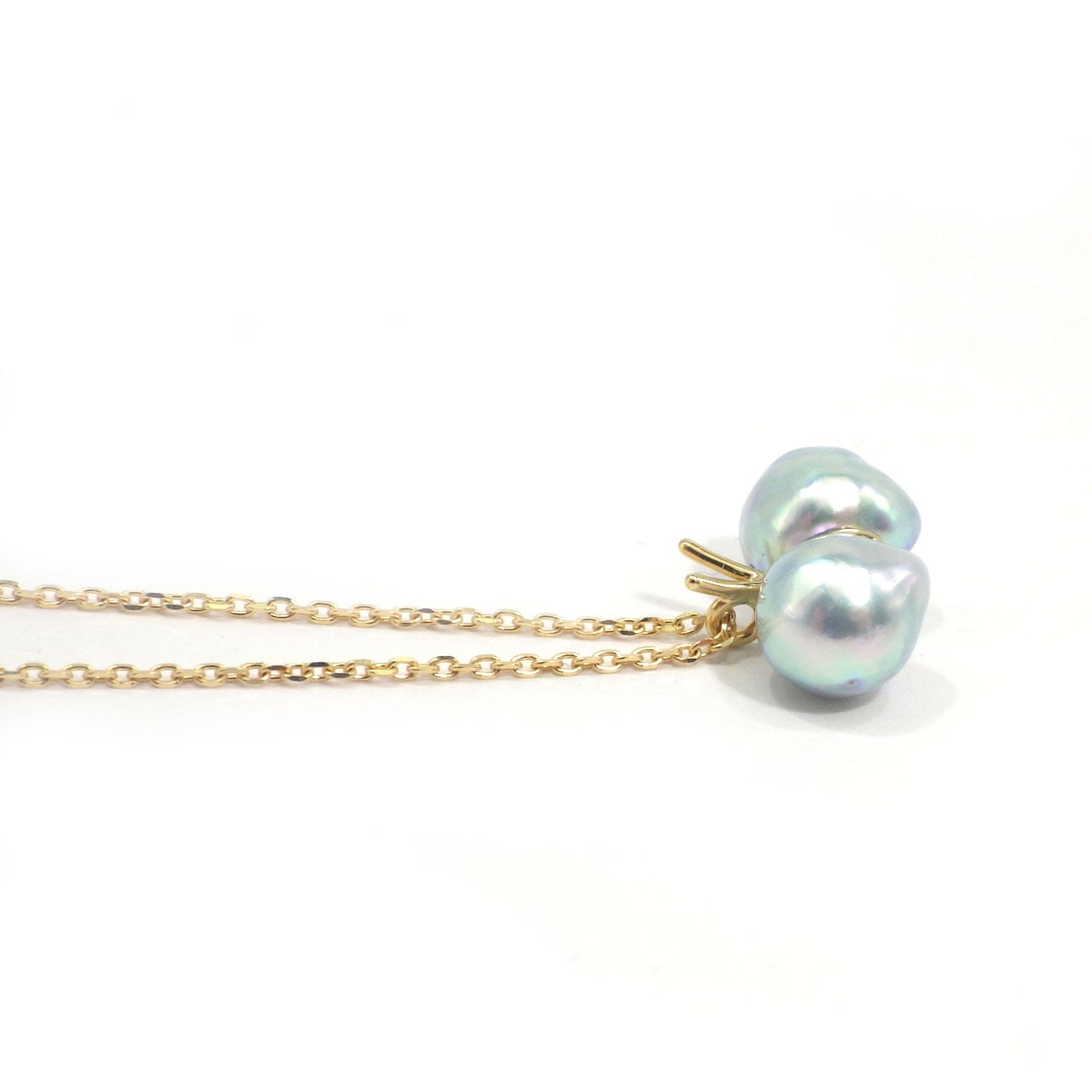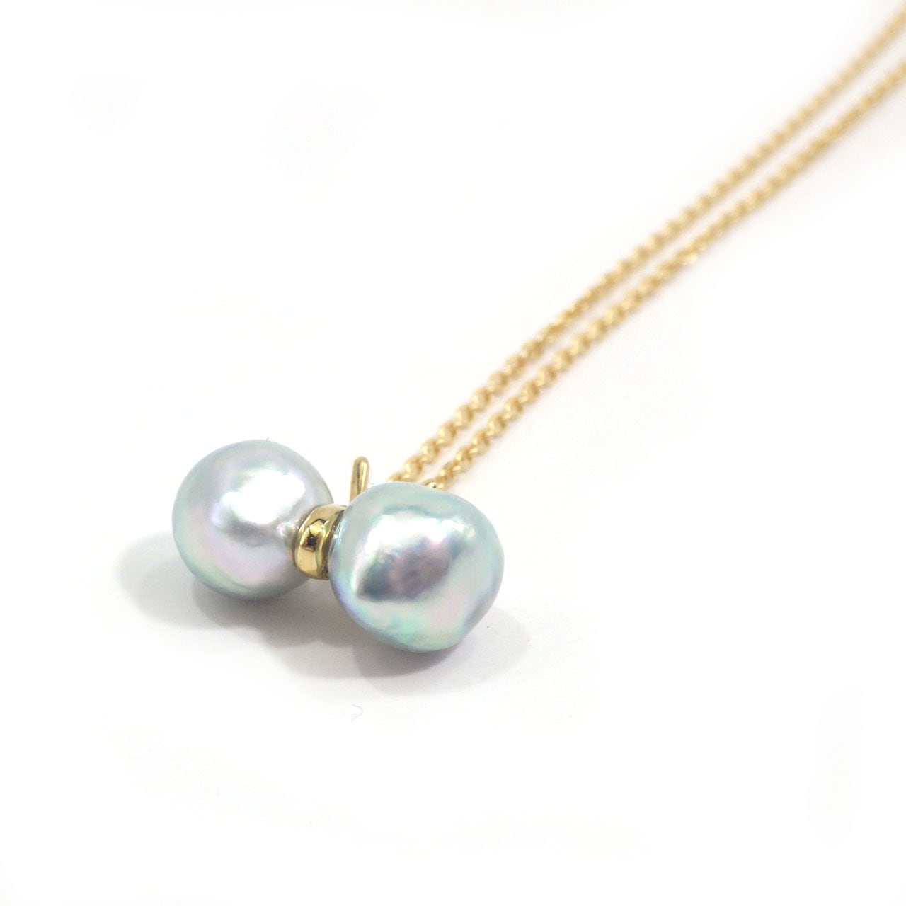 K18YG アコヤ真珠 無調色ナチュラルブルーグレー ペンダントネックレス《てふてふ》(KR71205)