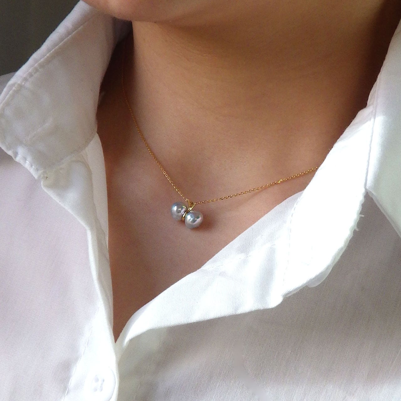 商品名:アコヤ真珠 無調色ナチュラルブルーグレー ペンダントネックレス 《てふてふ》【KAWABE JEWELRYオリジナル】