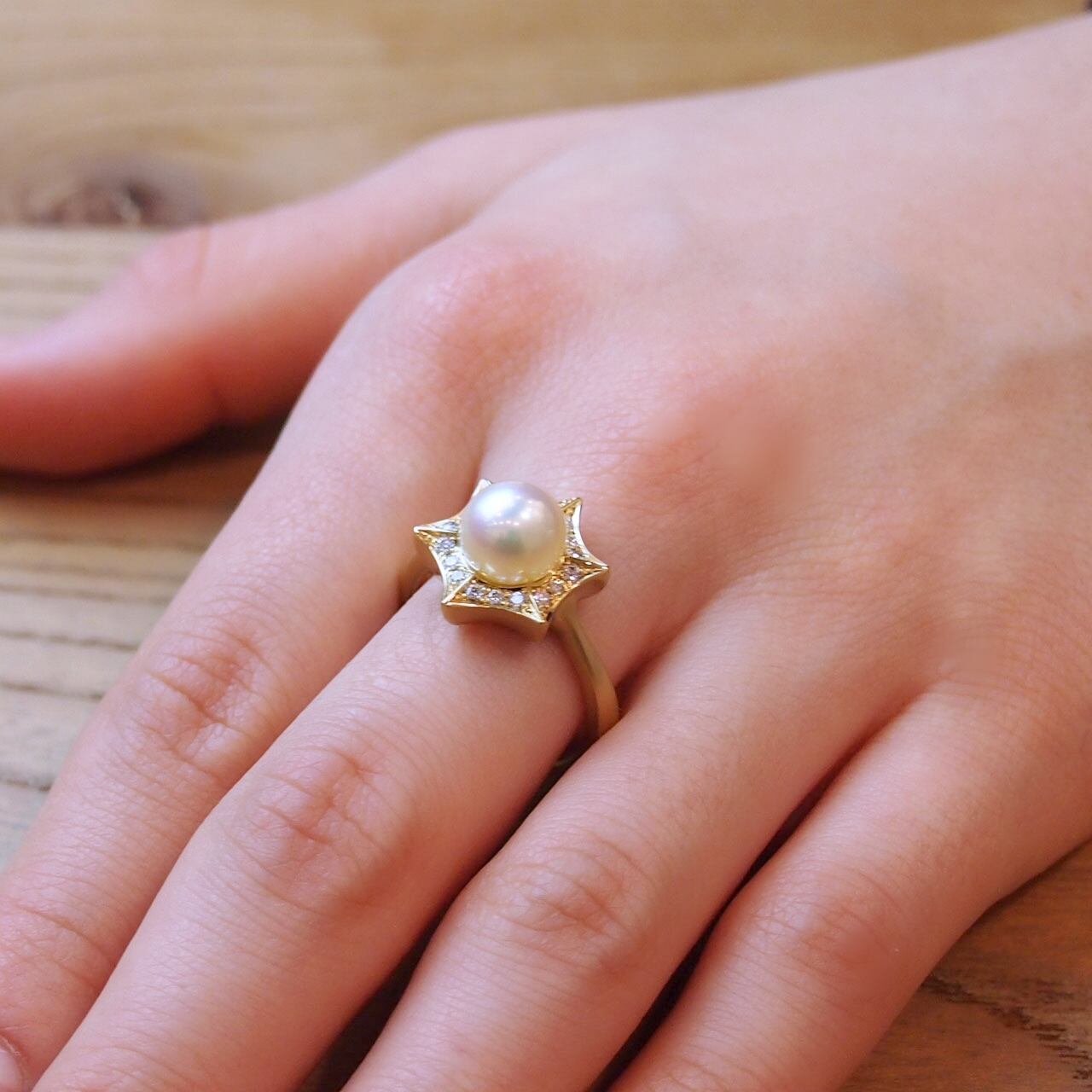 K18YG アコヤ真珠・ダイヤモンドリング 【KAWABE JEWELRYオリジナル】
